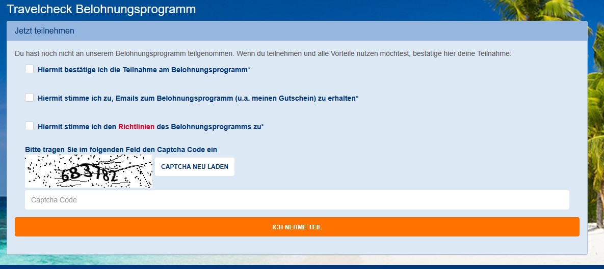 Entscheide dich vor Reiseantritt für die Teilnahme am Belohnungsprogramm!