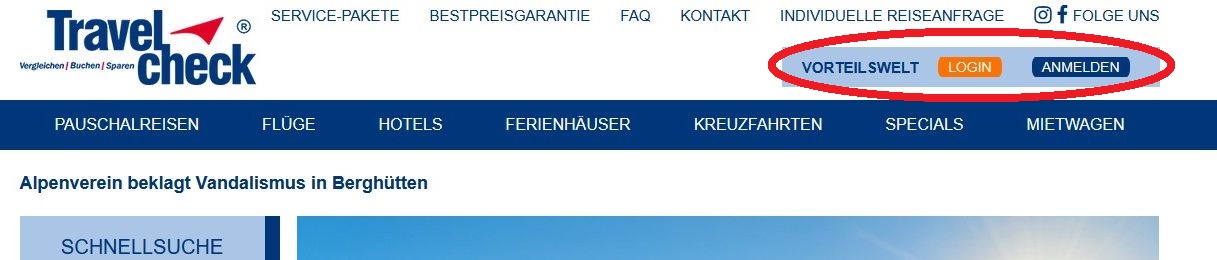 Tippe auf "Anmelden" im Menü oben, um ein Vorteilsweltkonto zu erstellen oder auf "Login", um dich in deinem bereits vorhandenen Konto einzuloggen.